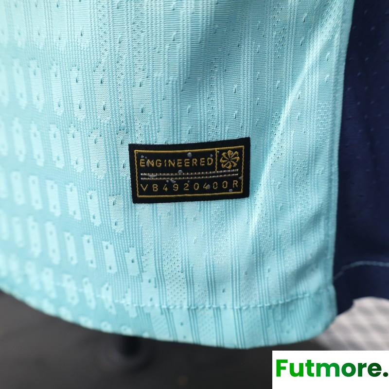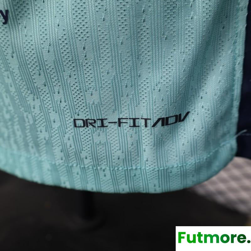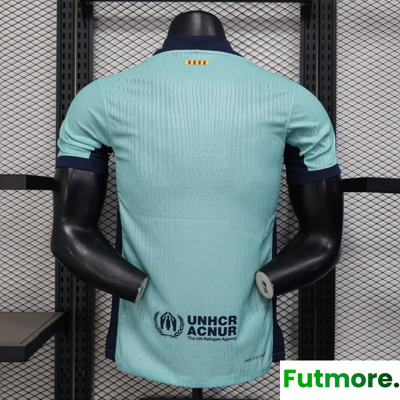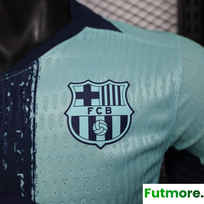 Player Version 25/26 Barcelona Blue 125Th Anniversary Mint Green Jersey with Navy Blue Stripe and Spotify Sponsor