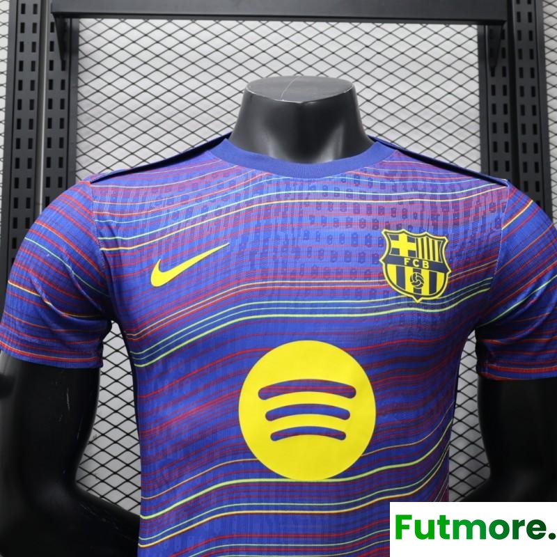Player Version 25/26 FC Barcelona Blue with Colorful Wave Stripes Jersey