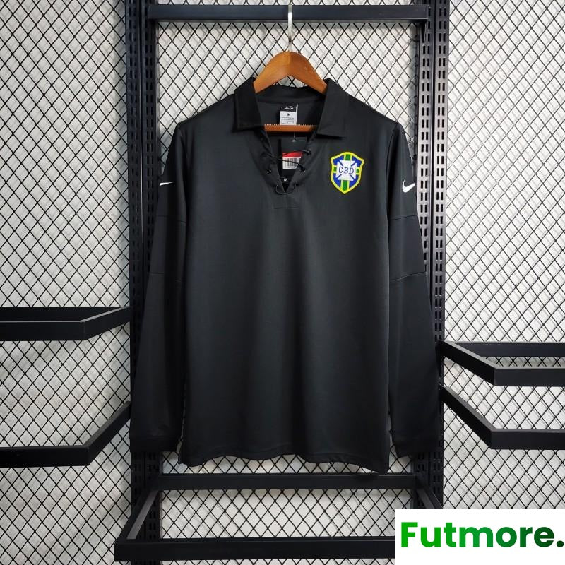 Retro 2004 Brazil Special Edition Black Long Sleeve Jersey