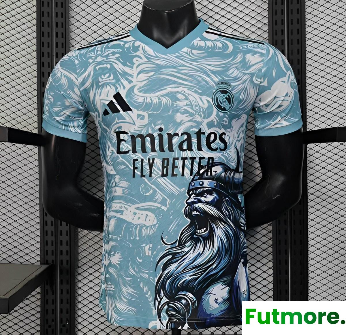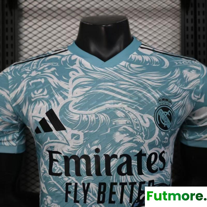 Player Version 25/26 Real Madrid Light Blue with Viking Warrior Pattern Jersey