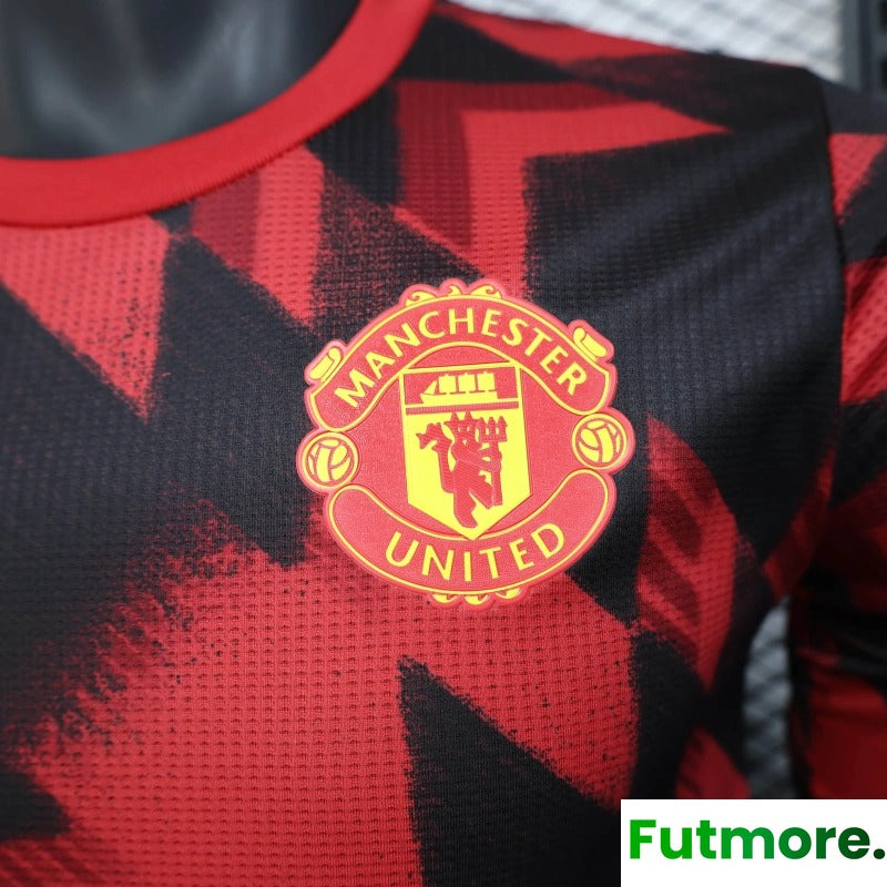 25/26 Player Version Manchester United Red Geometric Pattern Pre-Match Training Jersey