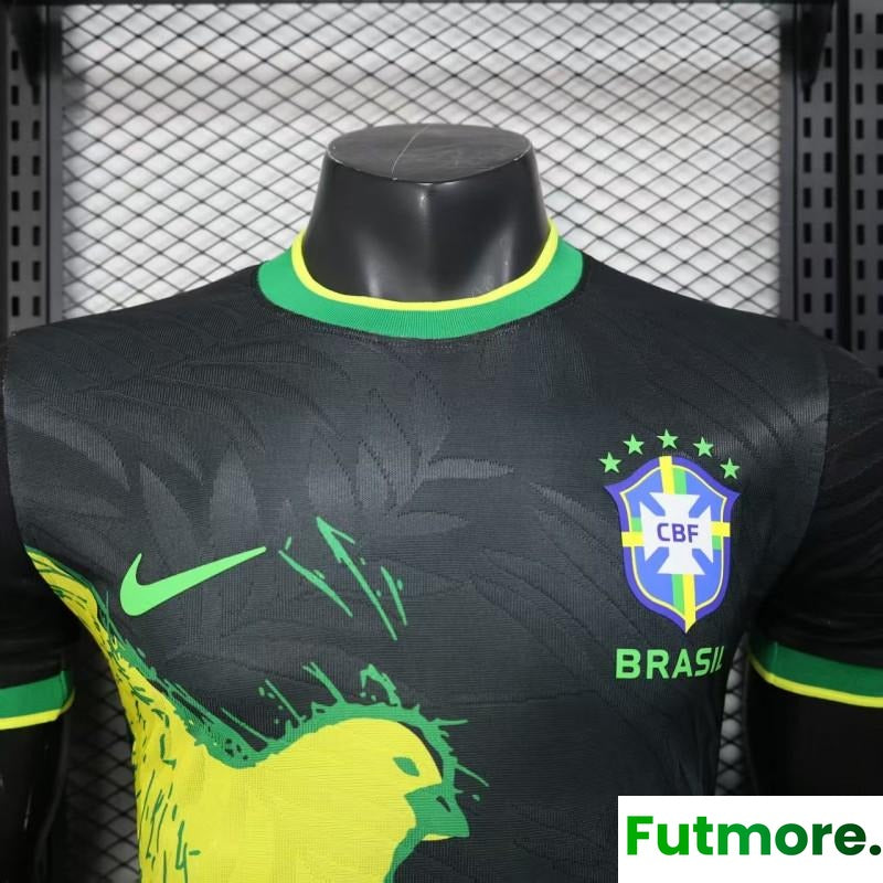 Player Version 2025 Brazil Black with Eagle Print Jersey