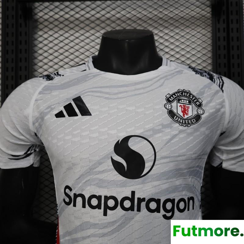 Player Version 25/26 Manchester United White with Marble Pattern and Snapdragon Sponsor Jersey