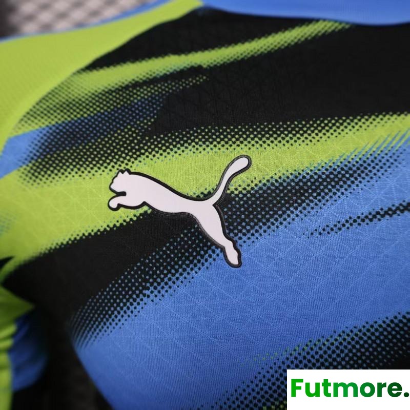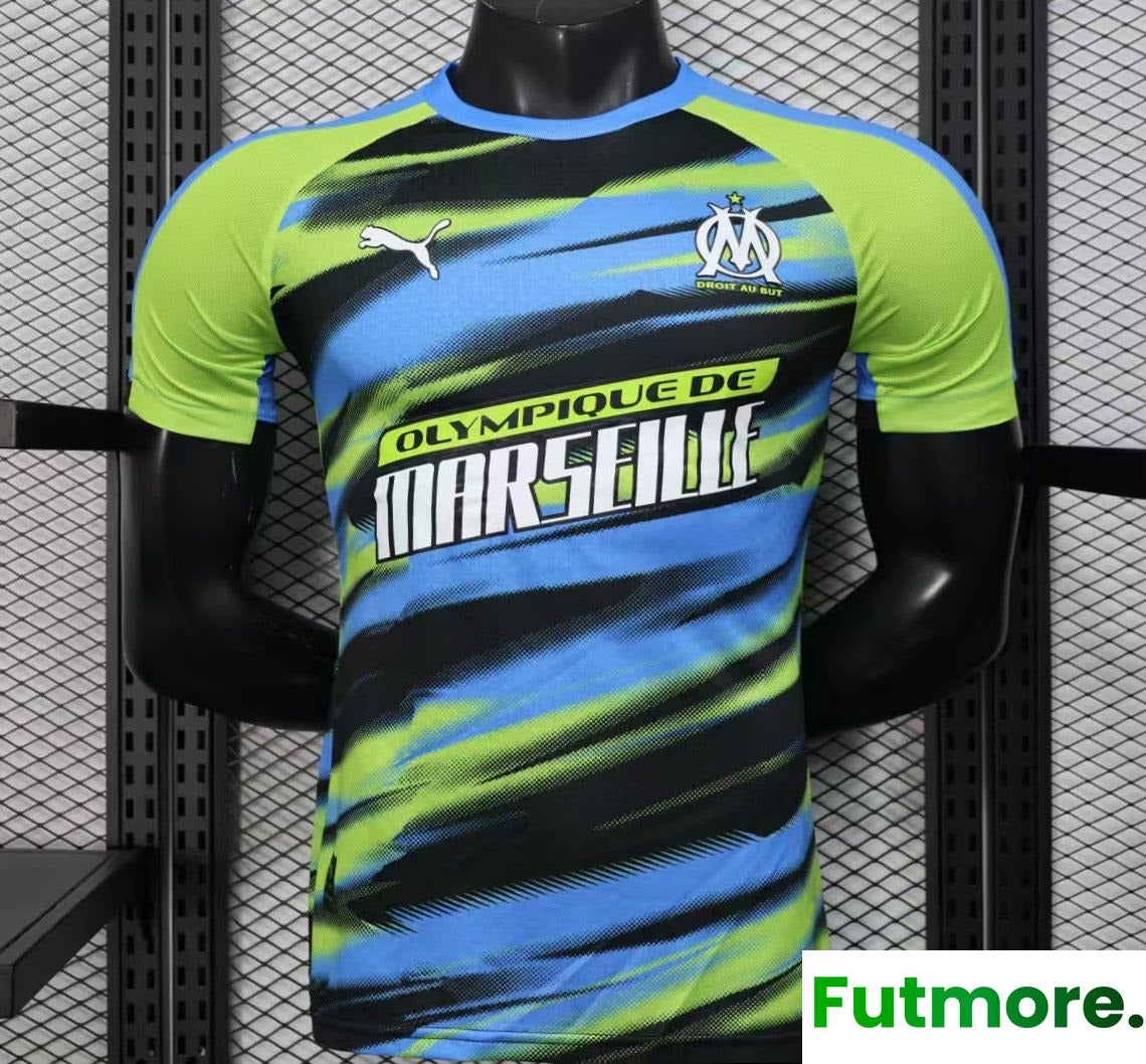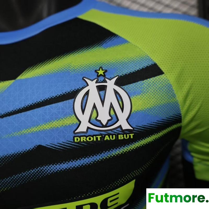 Player Version 25/26 Olympique de Marseille Neon Green Blue Black Gradient Stripe Jersey