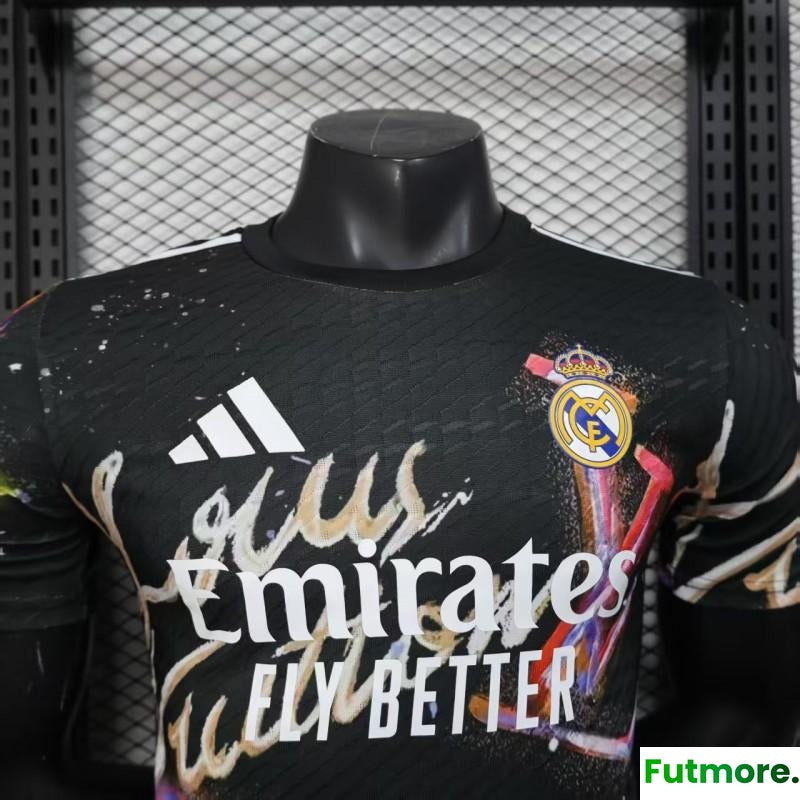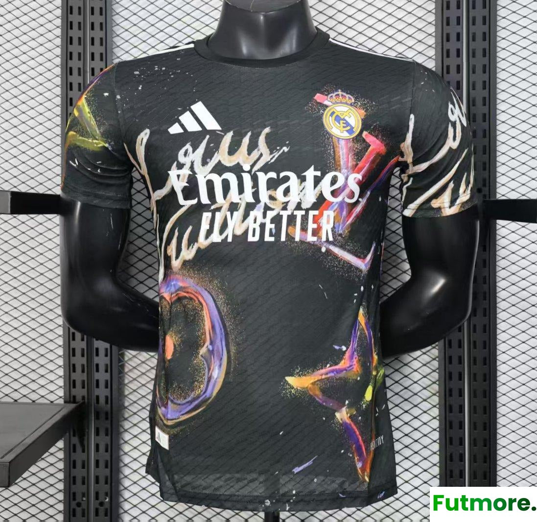 Player Version 25/26 Real Madrid Black with Colorful Abstract Art Pattern Jersey