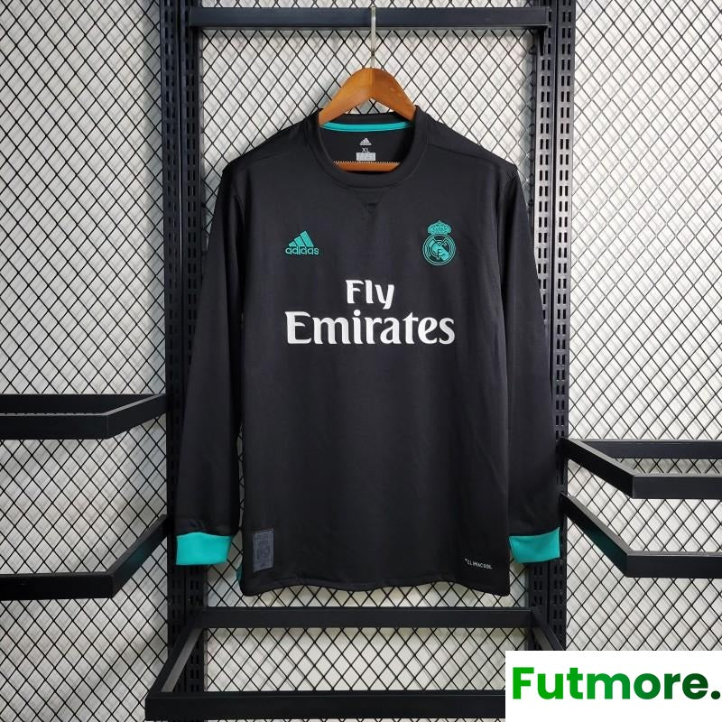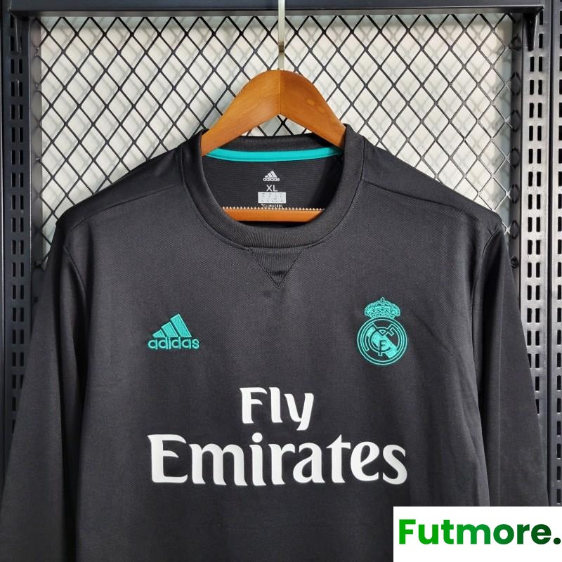 Retro Long Sleeve 17-18 Real Madrid Away Black Jersey