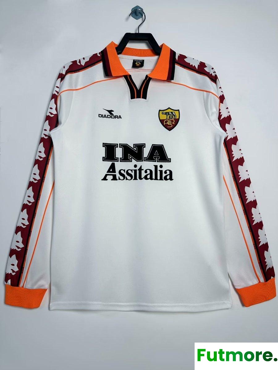 Retro 98/99 Roma Away WhiteLong Sleeve Jersey