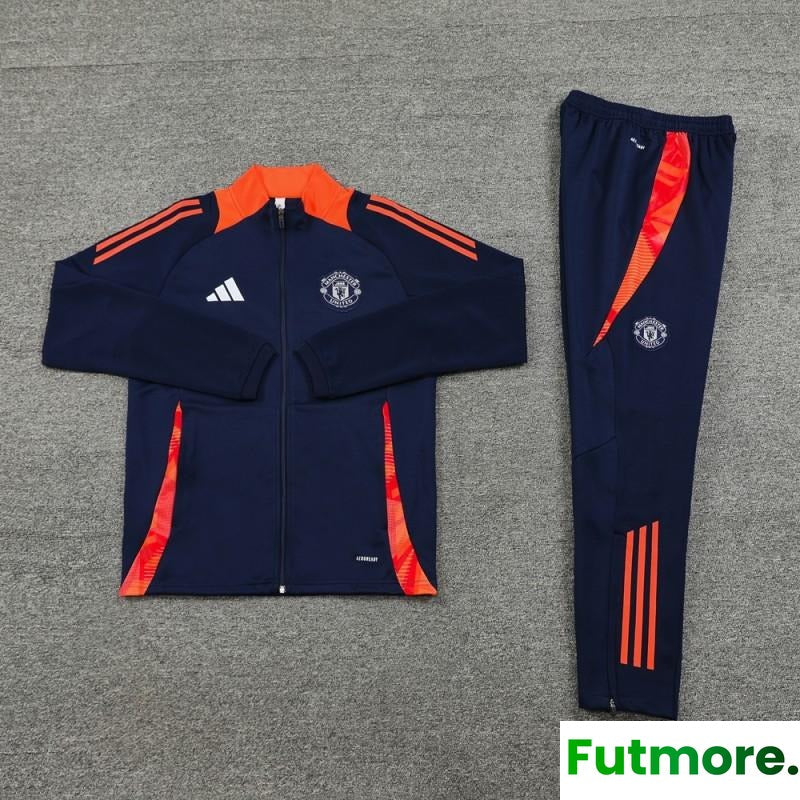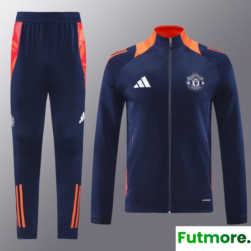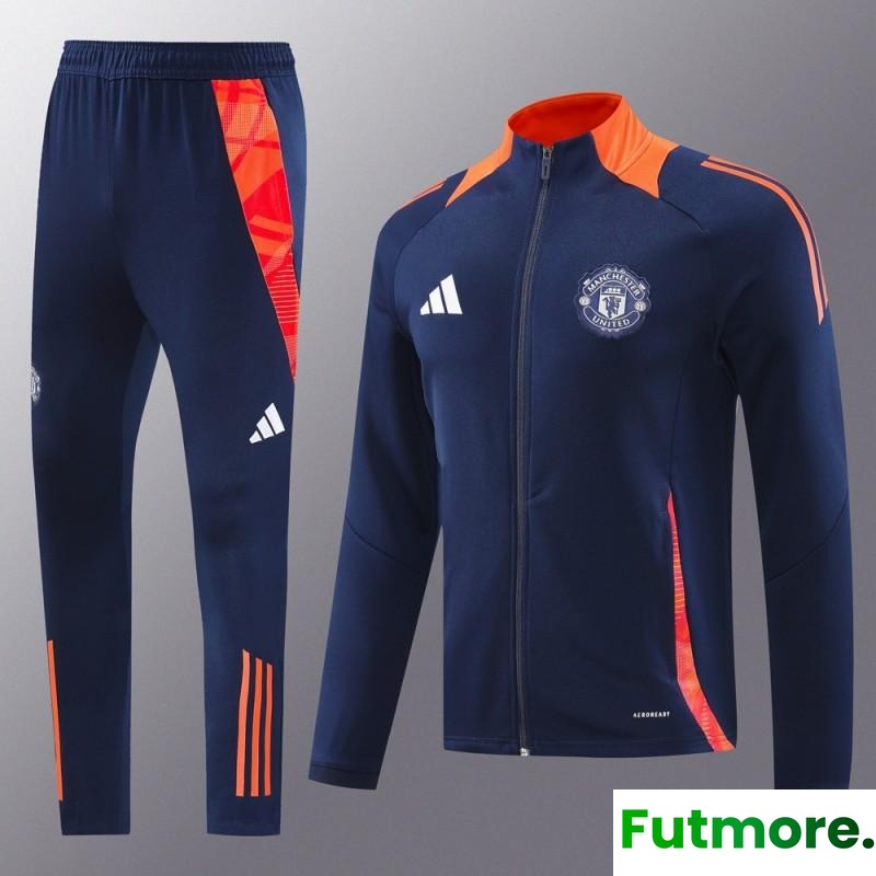 24/25 Manchester United Navy/Orange Full Zipper Jacket +Long Pants