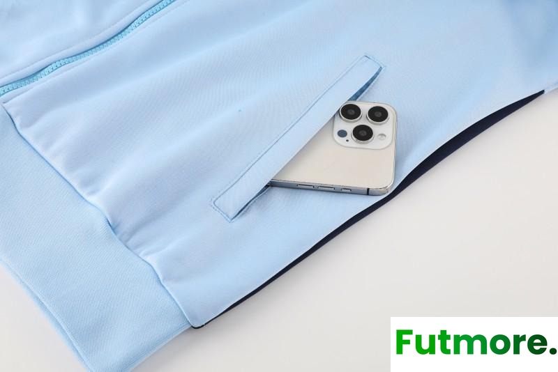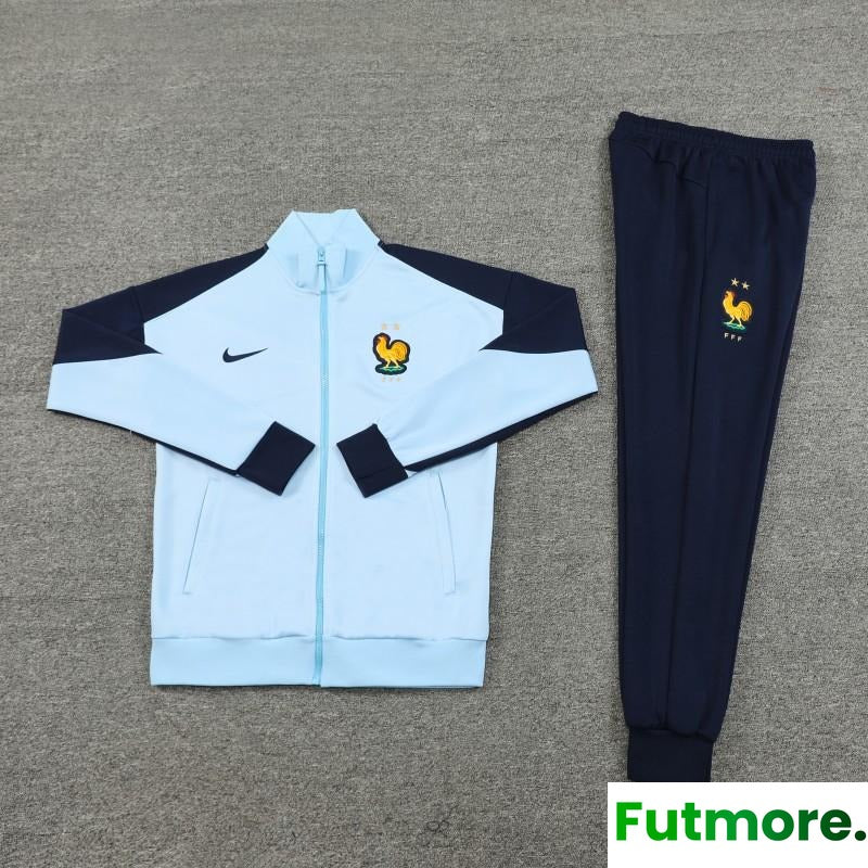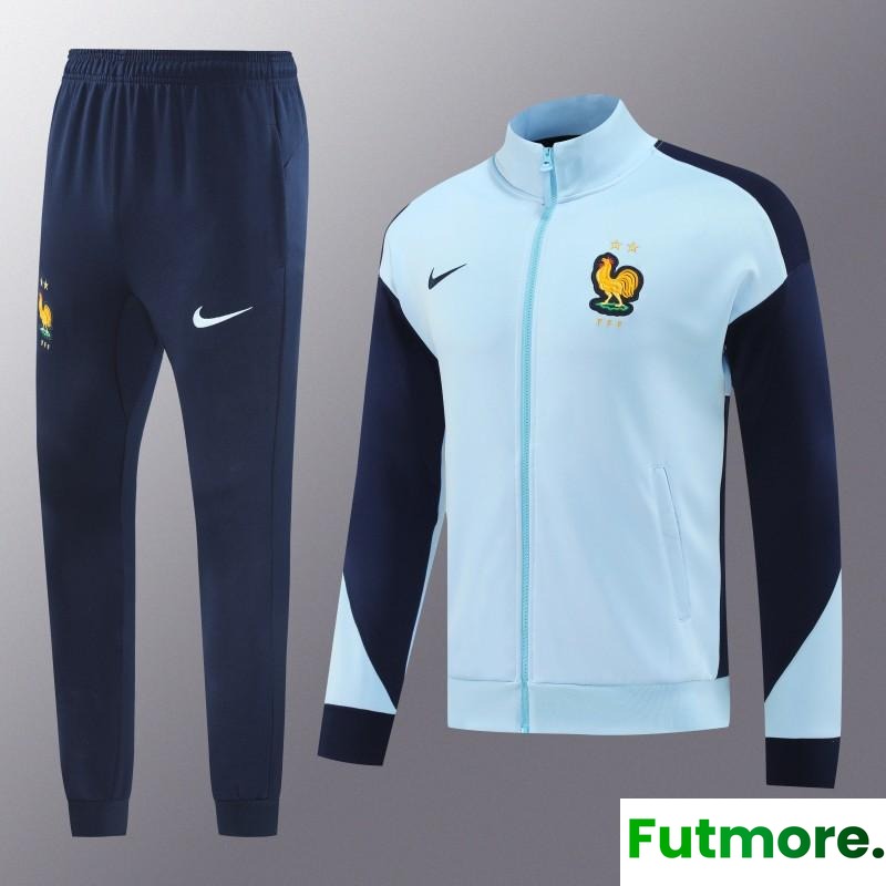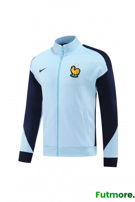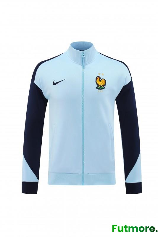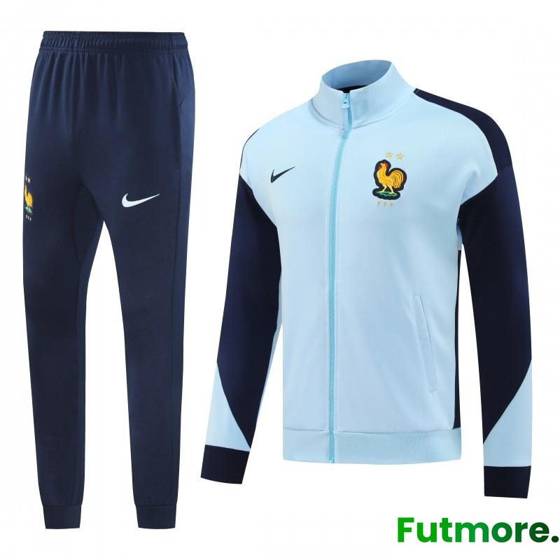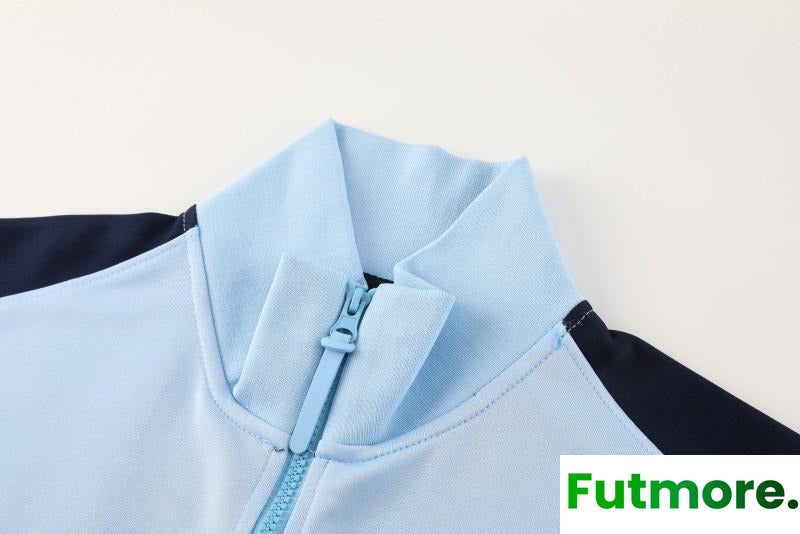 2024 France Light Blue Full Zipper Jacket +Long Pants