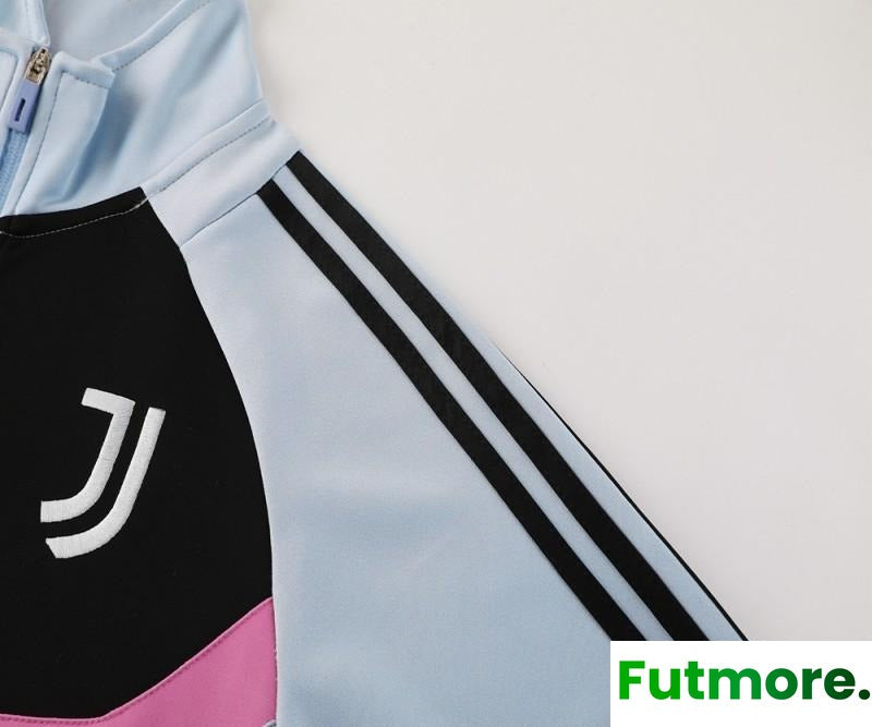 24/25 Juventus Light Blue/Black Full Zipper Jacket +Long Pants